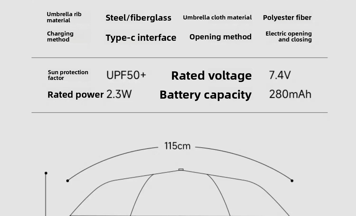 Mechanism: Fully automatic open/close (8 ribs)