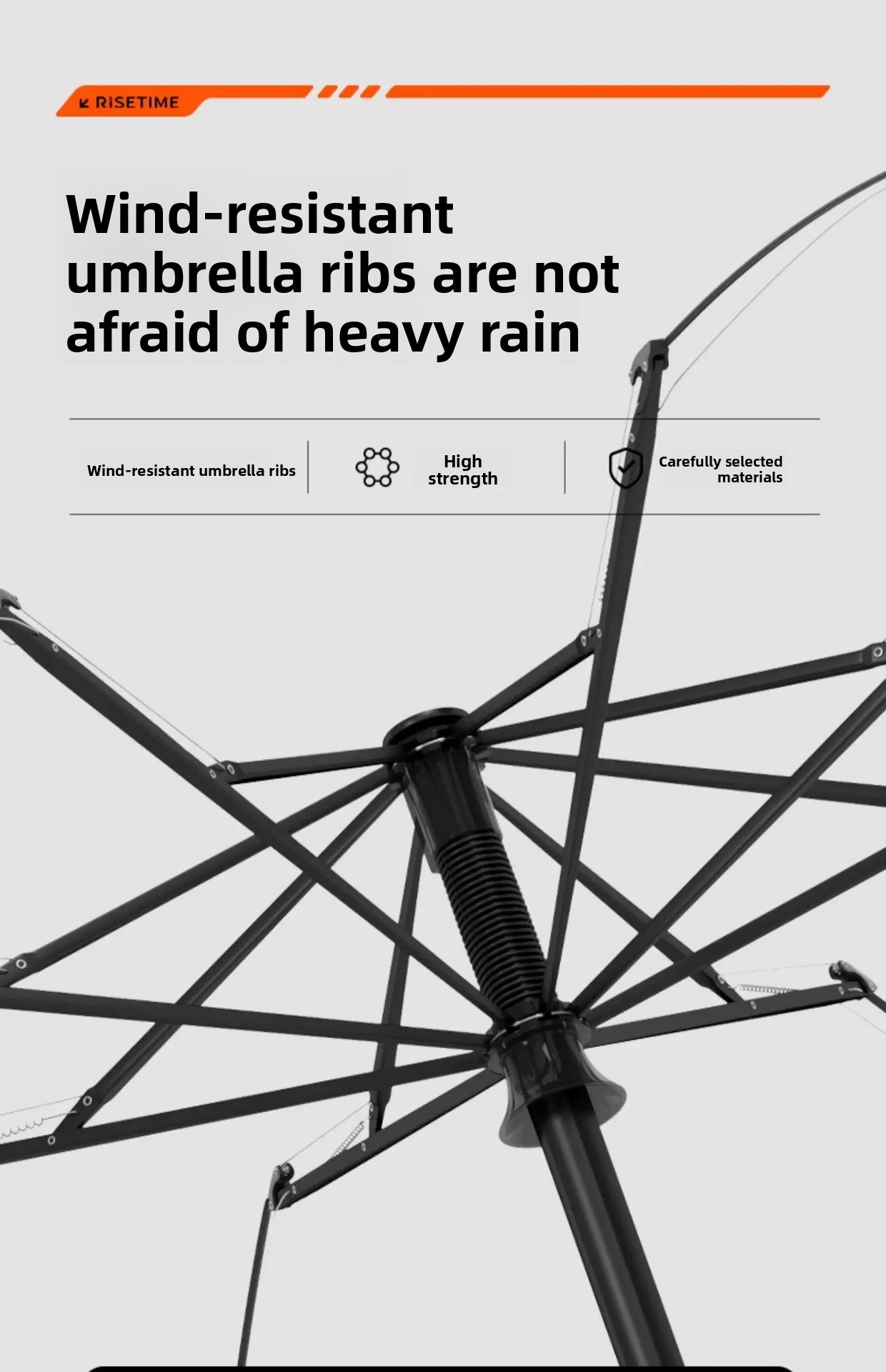 Reinforced Wind-Resistant Design: Sturdy construction with fiber ribs and alloy central rod for durability.
